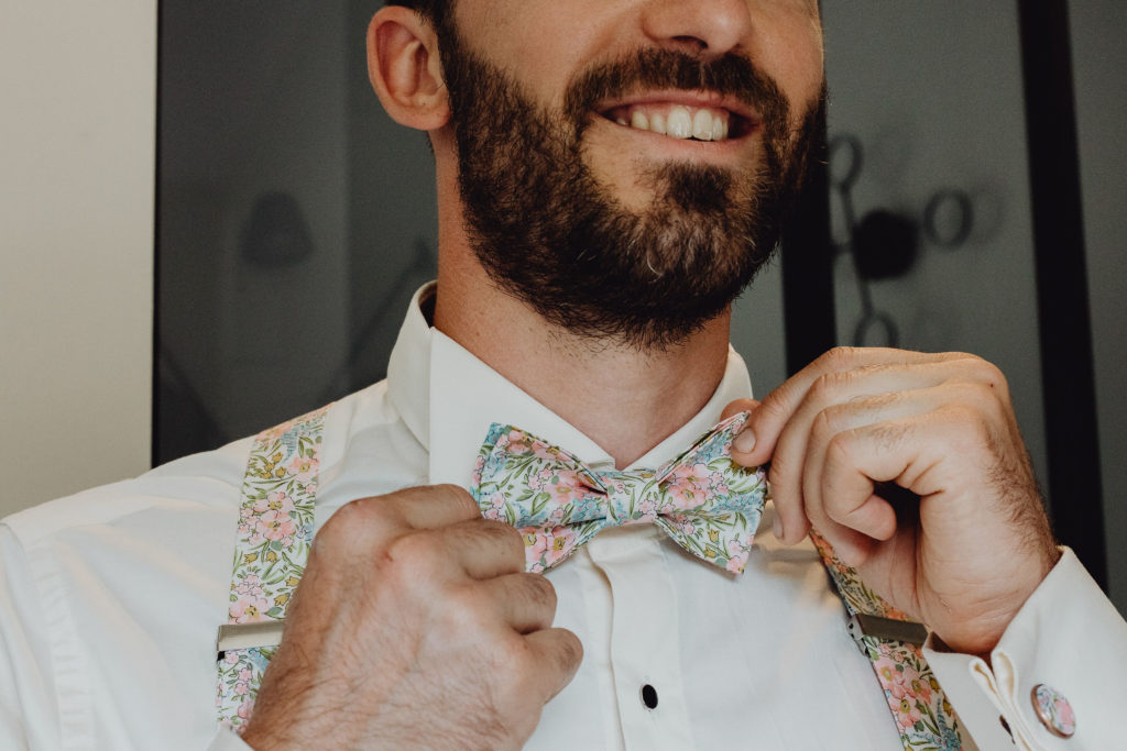 Chez moi, vous trouverez noeuds papillons, pochettes, boutons de manchette, bretelles, accessoires cheveux, chapeaux, ceintures, lacets, bracelets témoins, coussins et pochettes à alliances, pochettes à main….et même pour vous animaux qui vous accompagneront en ce jour si particulier, pour tous et dans toutes les tailles. De quoi personnaliser votre cérémonie.