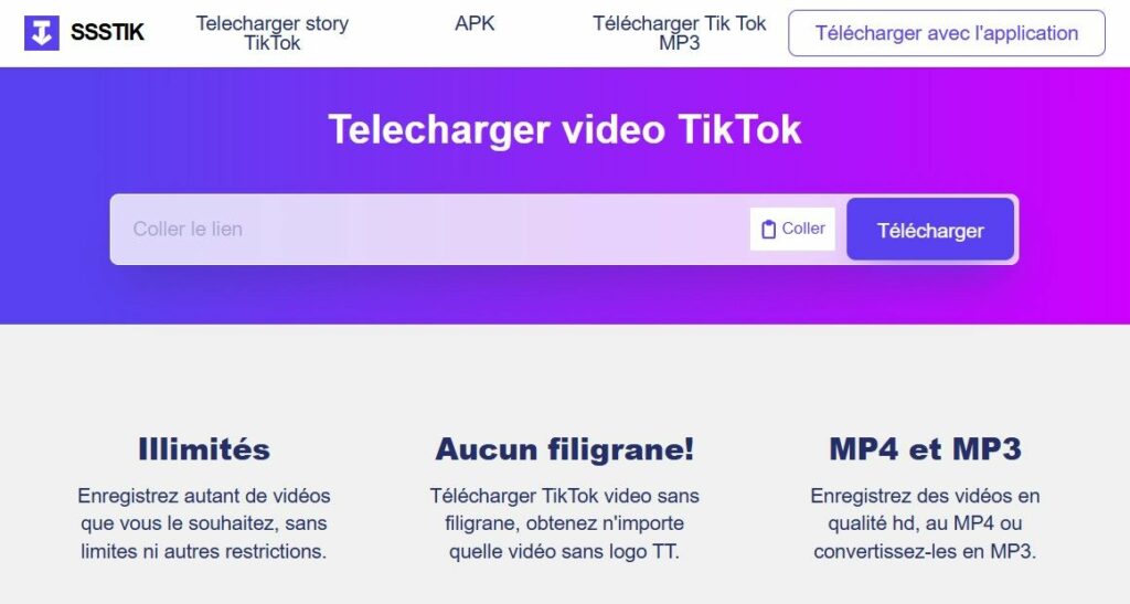 Rendez-vous sur sssTik dans votre navigateur. Collez le lien copié dans la zone de texte prévue. Appuyez sur le bouton de téléchargement.
